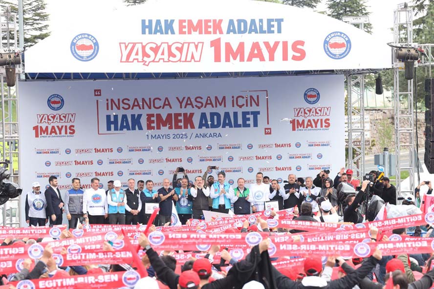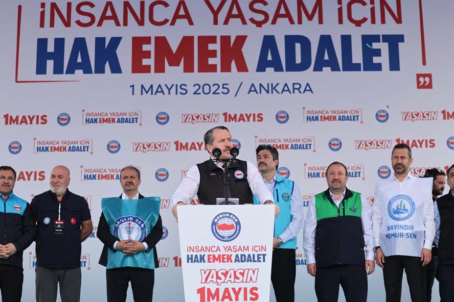 “Mülakata son verilmeli, maaş sistemi sadeleşmeli, ücret skalasındaki çarpıklık düzeltilmeli, emeklilik sistemi adil, sürdürülebilir bir zemine oturtulmalı, 1. Dereceye 3600 ek gösterge vaadi hayata geçirilmeli. Mühendislik Meslek Kanunu çıkarılmalı, akademik zam dahil kamu görevlilerinin ücretleri iyileştirilmeli. Yardımcı hizmetler sınıfı lağvedilmeli, genel idari hizmetler sınıfına geçirilmeli. Engelli kamu görevlilerinin yaşadığı sorunlar çözülmeli. Kamuda görevde yükselme sistemi, unvan değişikliği sınavları bir sisteme bağlanmalı, keyfe keder yapılmamalı. Kamu görevlilerine de bayram ikramiyesi verilmeli, diyoruz. Devletimiz bunları yapabilecek güçte. Türkiye Yüzyılına yakışacak, ülkemizi geleceğe taşıyacak adımları atmanın tam zamanı. Geçmişte çok daha büyük sorunlar vardı, onlar çözüldü. Bu saydıklarımız hayli hayli çözülebilecek sorunlar. Taleplerimiz ve mücadelemiz sonucunda; Taşerona kadro çözüldü. Sözleşmeliye kadro çözüldü. 4C çözüldü. EYT çözüldü. 3600, ek gösterge 1. Dereceye hariç çözüldü. Başörtüsü yasağı çözüldü, Cuma izni, hac izni çözüldü. Asgari ücrette vergi muafiyeti çözüldü. Olmaz denilen birçok konu oldu, çözülmez denilen birçok konu çözüldü. Bunlar çözen irade kamu personel sistemindeki çarpıklığı da sendika yasasındaki bozukluğu da vergi sistemindeki adaletsizliği de çözebilecek güce ve kudrete sahip. Örgütlülüğün artmasının yolunu açan, 1 Mayıs’ı önce bayram sonra tatil ilan eden irade, demokratik toplumu, katılımcı yönetimi önemseyen iradedir. Yetkinin değişmez adresi Memur-Sen olarak; Her biri hizmet kolunda yetkili 11 sendikamızla, 1 milyon 100 bini bulan örgütlü gücümüzle,30 milyona yakın üyesi bulunan ILC ile, Kıbrıs Türk Eğitimciler Sendikası KIBTES ile, insanlığın umudunu artırmak için, küresel emperyalizme, neoliberal kapitalizme, siyonizme DUR demek için, sosyal adalet için, kamu görevlilerimiz, üyemiz, ülkemiz, yerküremiz için büyük ve Güçlü Türkiye için Yaşasın Emek, Yaşasın Emeğin Dayanışması diyoruz. Tüm 1 Mayıs alanlarına, Türkiye’nin ve Dünyanın bütün emekçilerine selam olsun. Yaşasın Emek, Ekmek, Adalet mücadelemiz. Yaşasın Emeğin Dayanışması, Yaşasın 1 Mayıs…”