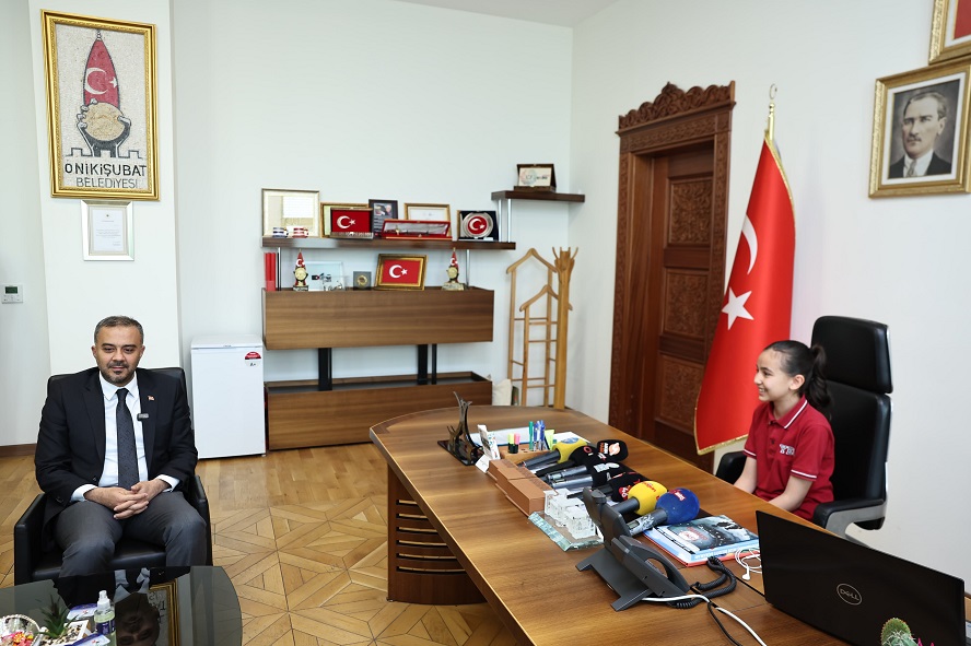 Onikişubat Belediye Başkanı Hanifi Toptaş, 23 Nisan Ulusal Egemenlik ve Çocuk Bayramı münasebetiyle başkanlık koltuğunu Yunus Emre Ortaokulu’ndan 6’ncı sınıf öğrencisi Azra Gök’e teslim etti.