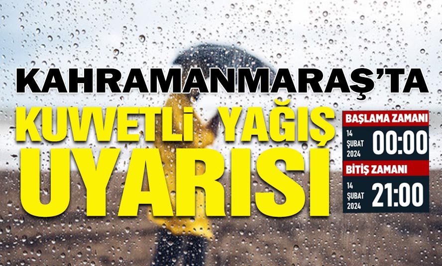 Kahramanmaraş Büyükşehir Belediyesi Afet Koordinasyon Merkezi (AKOM), 14 Şubat Çarşamba günü Afşin, Elbistan, Ekinözü, Göksun ve Nurhak ilçelerinde karla karışık yağmur; Onikişubat, Dulkadiroğlu, Andırın, Pazarcık ve Türkoğlu’nda ise sağanak yağış beklendiğini duyurdu. Gece saatlerinde başlayacak yağışların gün boyu devam edeceği öngörülüyor. Yağışlar neticesinde meydana gelebilecek olası sel, su baskını, yıldırım ve yağış anında kuvvetli rüzgâr gibi olumsuzluklara karşı dikkatli ve tedbirli olunması noktasında vatandaşlar uyarılırken AKOM’dan yapılan açıklamada; herhangi bir olumsuzlukla karşılaşılması durumunda vatandaşların 112 Acil Çağrı Merkezi ve ALO 153’ten Afet Koordinasyon Merkezi’ne (AKOM) ulaşabilecekleri belirtildi.