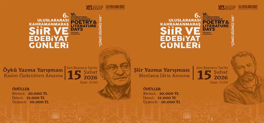Edebiyatın farklı türlerine kapı aralayan yarışmalarda, başvurular 15 Şubat 2026 tarihine kadar kabul edilecek. Yarışmaya katılmak isteyen edebiyatseverler; katılım şartları, yarışma takvimi ve başvuru formuna https://kahramanmaras.bel.tr/duyuru/2026/01/08/6-uluslararasi-kahramanmaras-siir-ve-edebiyat-gunleri-basvuru-formu internet adresinden ulaşılabiliyor. Kahramanmaraş Büyükşehir Belediyesinden yapılan açıklamada, edebiyatın birleştirici gücüne vurgu yapılarak, yarışmanın hem yeni yeteneklerin keşfedilmesine hem de edebiyatın toplumun her kesimine yayılmasına katkı sunacağı ifade edildi. Açıklamada ayrıca, şiir ve öyküye gönül veren tüm edebiyatseverler yarışmaya davet edildi.