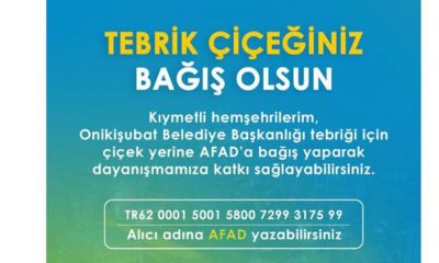 Büyükşehir Belediye Başkanı Fırat Görgel, sosyal medya üzerinden mesaj yayınlayarak, tebrik için çiçek yollamak isteyen vatandaşlara AFAD’a bağış çağrısında bulundu.