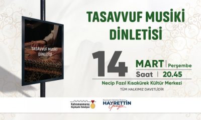 Büyükşehir Belediyesinin Ramazan ayı etkinlikleri 14 Mart Perşembe günü NFK Kültür Merkezi’nde düzenlenecek tasavvuf musiki dinletisiyle başlayacak. Saat 20.45’te başlayacak dinletiye tüm vatandaşlar davet edildi.