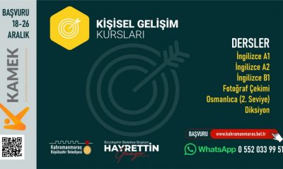 Büyükşehir Belediyesinin düzenlediği KAMEK’te; İngilizce A1, A2 ve B1, Osmanlıca, Fotoğraf Çekimi ve Diksiyon Kurslarına başvurular bugün sona eriyor.