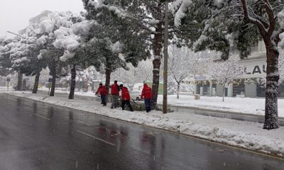 Büyükşehir Belediyesi, olumsuz hava şartlarının ulaşım ve günlük yaşamı olumsuz etkilememesi için arterler ve kaldırımlarda müdahalelerini yoğun bir şekilde sürdürüyor.